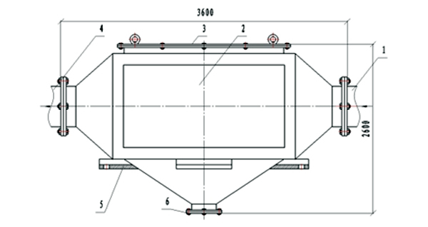 1設備進(jìn)風(fēng)口、2催化劑盒、3設備上蓋、4設備出風(fēng)口、5設備固定位和6設備卸料口